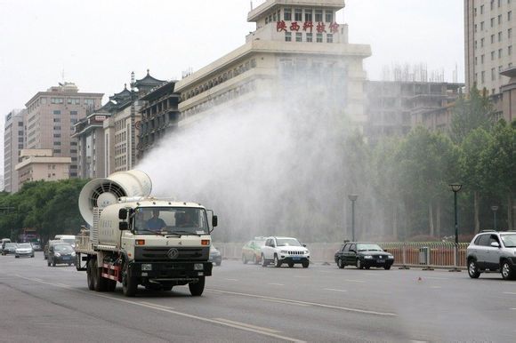 该“ 雾炮机 ”又叫环保除尘风送式喷雾机,安装在车的后半部分。“雾炮”的原理是在液泵喷水后,利用风机将水喷洒出去,能喷洒120米远、90米高,向天空喷洒水雾,达到抑制扬尘、绿化除尘等效果。据了解,以前工地常用高压水枪来除尘,10吨的洒水车只能喷10分钟左右。该“雾炮”车同样10吨水可喷洒1个小时,且覆盖面积超过3